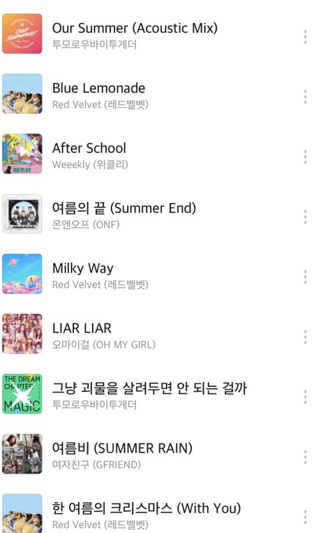 이 노래들은 여름 저녁 바람이 조금부는 그런 따뜻한 여름밤 느낌 노래들(사실 에이틴도 기억조작인데 걍 청량에 넣어서 듣고있엌ㅋㅋ)