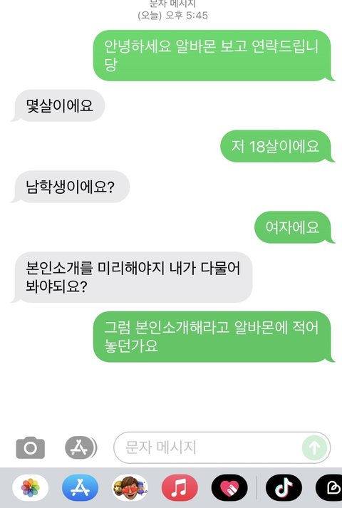 저 사장도 말이 툭 나오긴 했는데 알바지원 할 때 이름 나이 성별 경력 이정도는 필수로 보내야행