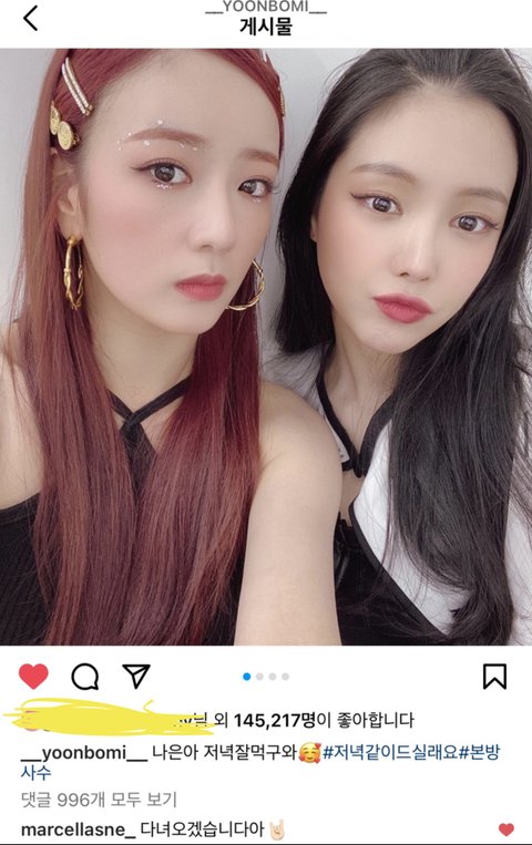 그리고 아까 글 봤는데 윤보미 유튜브 생방송 라이브에서 얼마 전 보미 이사한 집에서 손나은이랑 멤버들 다 같이 만나서 놀았다고 함 그니까 지금 상황이 어찌 됐든 사이가 안좋은건 아님