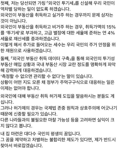 오... 역시 안철수입니다... 내국인 부동산 차별 없애야 합니다....