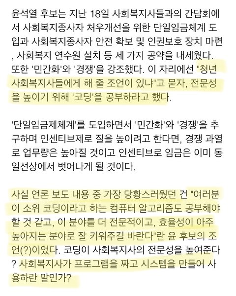 윤석열 “사회복지사 코딩 배워라”?!