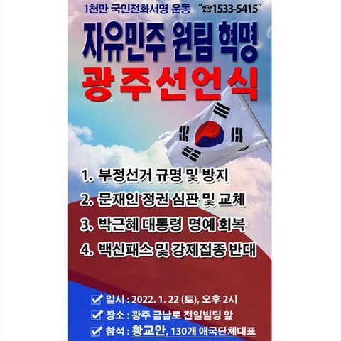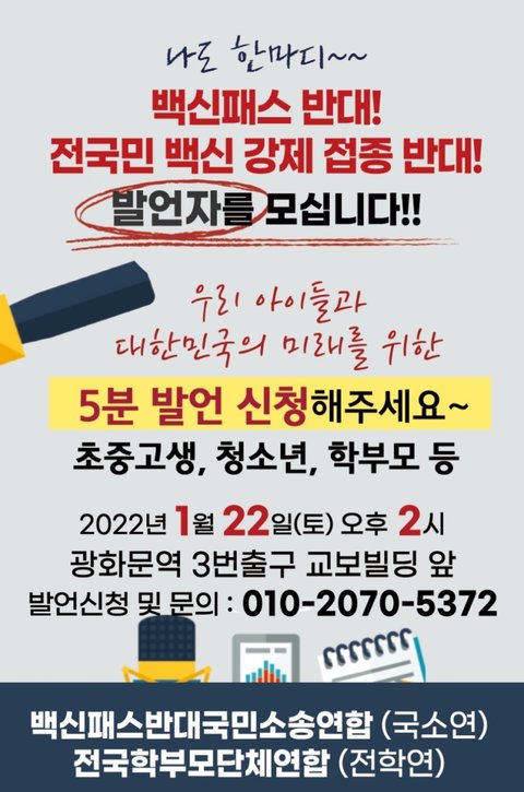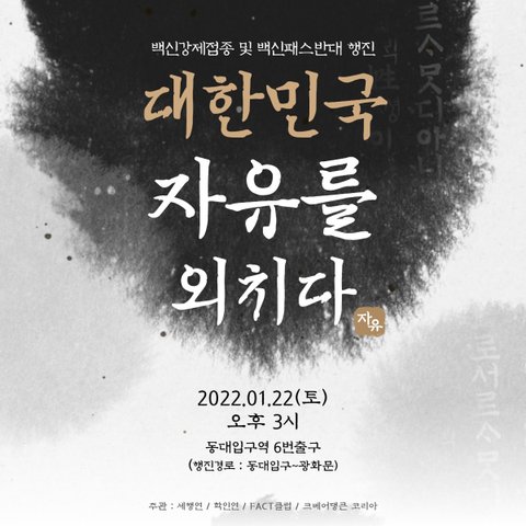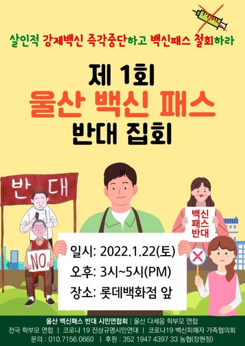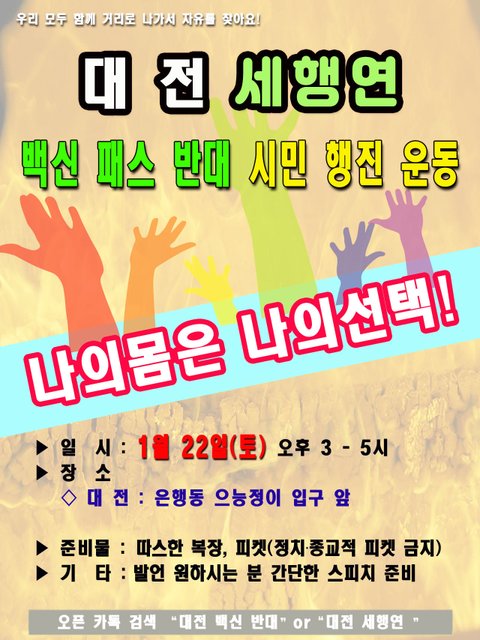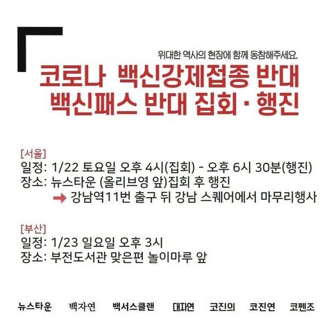 [주말 백신집회]광화문,강남,동대입구,부산,대구,울산,광주1.2,수원,대전1.2,청주