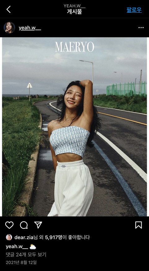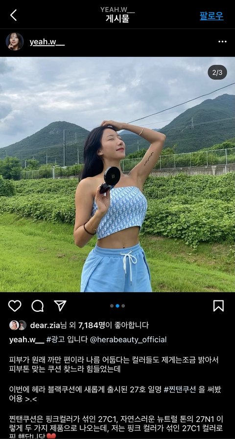 프리지아는 디올 화장품? 광고에 짝퉁 디올 가방을 같이 올려서 수익창출을 한 반면 (사실확인 된건지 모름) 예원은 없는줄 알았지만 이거와 비슷한 맥락으로 예원도 저 디올 탑을 입고 헤라 화장품 광고를 했음 두번째 업로드 사진 참고