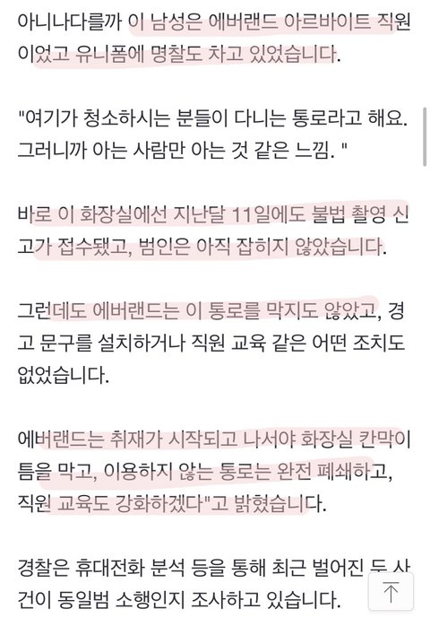 지난달에도 몰카 신고 접수됐지만 아무런 조치하지 않은 에버랜드와 한남의 조합이 대단하다 진짜