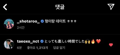 쇼타로 인스타에 태용이 일본어로 댓글 달았음,,,