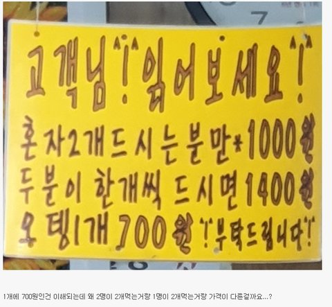 700원이 정가인데. 당신이 오뎅을 좋아해서 2개나 드시면 고마워서 할인해줄께요. 700원이 정가고 할인이 서비스임