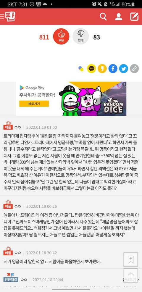 난 프리지아 유튭도 와 이쁘게 사네 ~ 이럼서 구독만 하고 명품 메이크업은 내 관심사 외라 안보게 됐다. 그냥 판에서 들려오는 소식만 듣는 정도. 처음에 솔로지옥 나오기 전에 누가 쇼파에 달력 놓아져있는 캡쳐랑 생계형 인플루언서 보면서 아~! 하게 됐고 명품 짭을 구매해 디자이너와 팬을 아웃오브 안중으로 본것이 큰 잘못이지먼 그저 판에서 까이는 이유중 큰 하나가 예쁘고 몸매좋고 학벌도 좋은 여자라 까이는거같아 아쉬웠다.