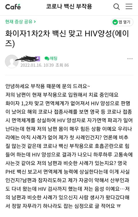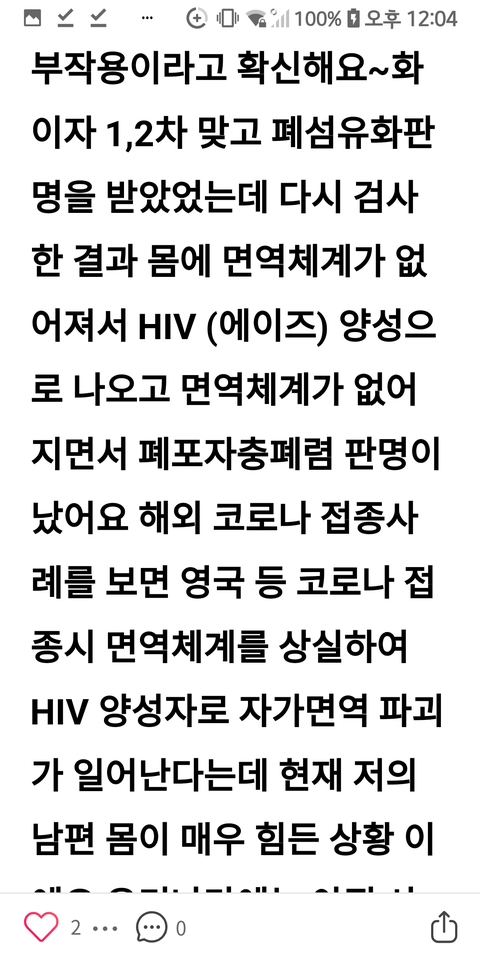 화이자1차2차맞고HIV 에이즈양성__퍼옴(네이버 카페)