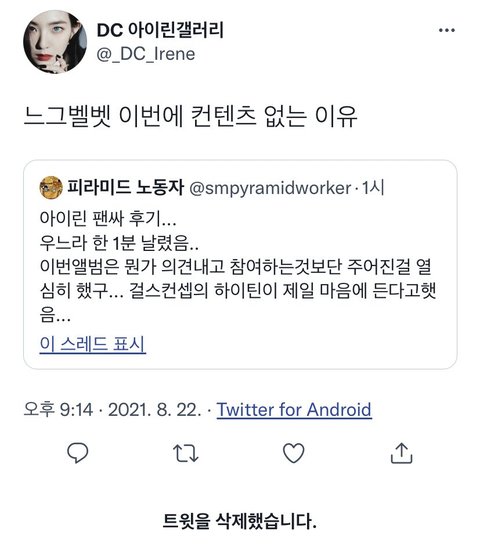 자컨도 아이린이랑 분리시켜서 따로 내라고 ㅈㄹ하노