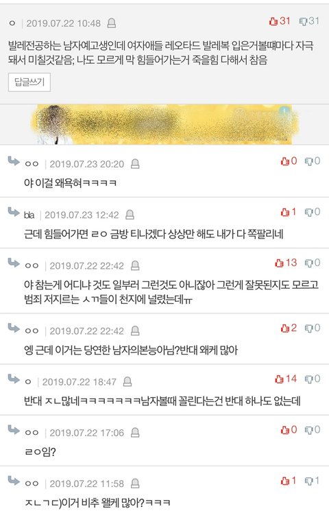 발레전공인데 한남들 진짜 역겹다..