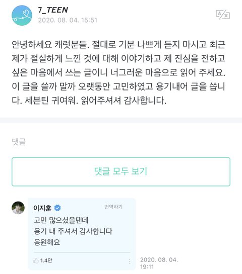이지훈 댓파하는것도 진짜 웃긴데 아티스트가 단 댓글만 볼 수 있게도 업데이트해줘라ㅡㅡ