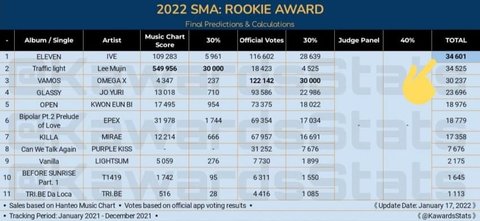 신인상이 두개도 아니고 세개인데 아이브가 못 받은거면 심사위원 점수에서 0점을 주지 않는 이상 무조건 받았어야 함 ㅋㅋㅋ