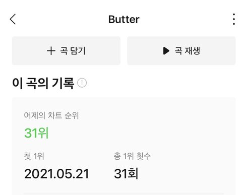 스티커 최고순위가 나온지 8개월된 버터 어제순위ㅋㅋㅋㅋㅋ