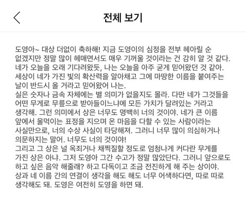 도영이 땡스투에 버블에서 받은 말 쓴 적 있잖아