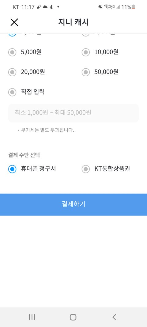 지니캐시 충전 카드로는 못해??