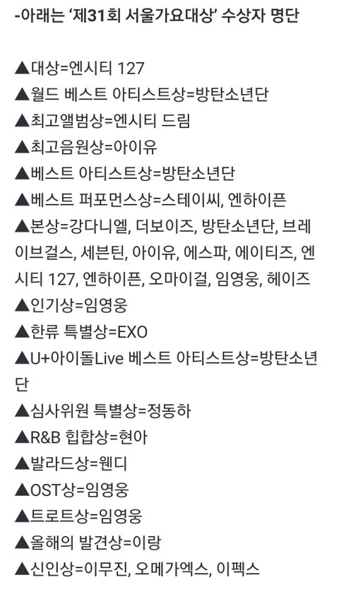 엔시티127 방탄 엔시티드림 아이유 방탄소년단 스테이씨 엔하이픈 강다니엘 더보이즈 방탄소년단 쁘걸 세븐틴 아이유 에스파 에이티즈 엔시티127 엔하이픈 오마이걸 임영웅 헤이즈 임영웅 엑소 방탄소년단 정동하 현아 웬디 임영웅 임영웅 이랑 이무진 오메가엑스 이펙스 축하해~~