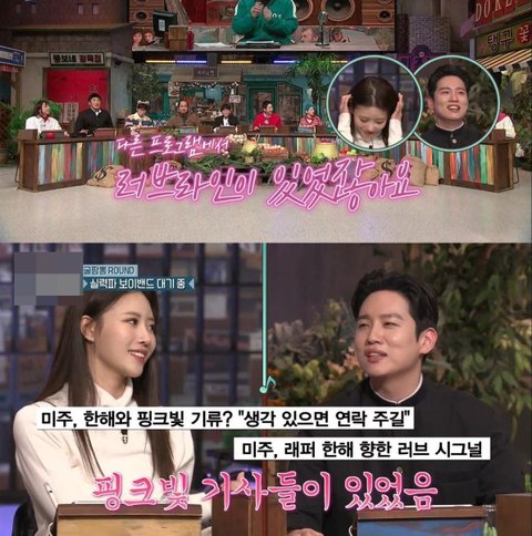 : 저희 둘이 핑크빛 기사들이 떠가지구~ㅎㅎ