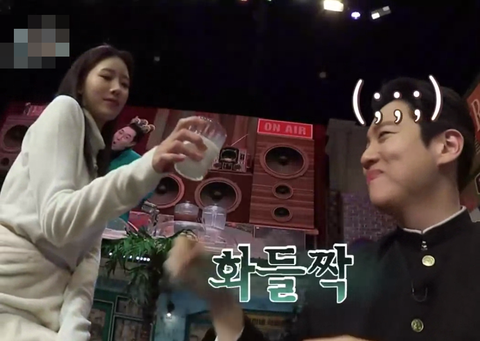 한해 화들짝 놀라서 맨손으로 건배하는게 웃김 ㅠㅠ