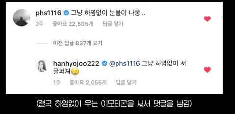 우는 이모티콘까지 해서 댓글 달았다고 한다...ㅋㅋㅋ