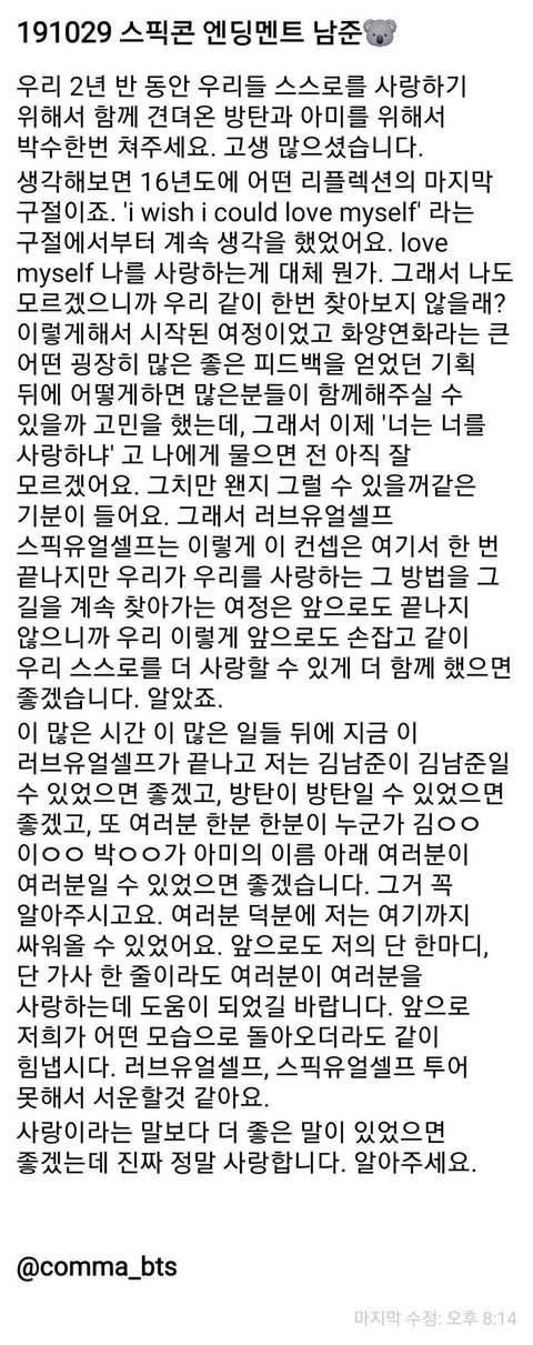 ㅠㅠ마지막 엔딩멘트 하면서 우는거... ㄹㅇ 맴찢이었다 너무 소중함 울 남주니...