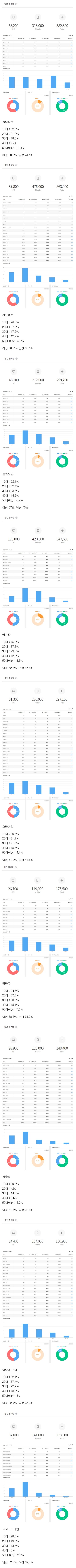 검색연령대랑 팬덤연령대 구분을 못하냐... 방탄, 블핑 같이 대중성 높은 그룹은 필연적으로 연령대가 고르게 분포될 수 밖에 없고 그래서 두 지표간 괴리가 심하게 나게 됨. 이에 반해 대중성 낮은 그룹은 사실상 팬덤 외에는 가수 이름을 모르기에 비교적 팬덤연령대와 검색연령대가 상당히 겹침. 특히 방탄같이 뉴스를 밥먹듯이 타는 애들은 실제 팬덤 연령분포에 비해 뉴스 시청자 연령대의 비율이 올라가고, 실제로 빌보드 , 아메리칸뮤직어워드 등의 단어하고 결합되면 304050의 비율이 상당히 올라가게됨. 반대로 팬덤에서 사용되는 모애화 용어나 특정 용어들을 검색하면 102030이 상당히 올라가게 될거고. 괜히 갤럽같은 여론조사 기관에서 전문적으로 매년 조사에 들어가는게 아님.