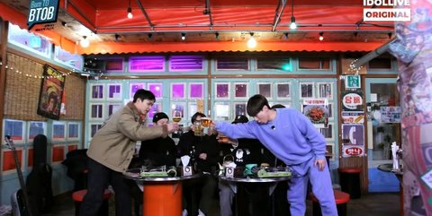정겨운 분위기의 술자리...힐링 분위기일지 술게임이라도 하는건지는 모르겠음 은광이는 피부같은 널디 입고있고 민혁이는 안경 쓰고있음