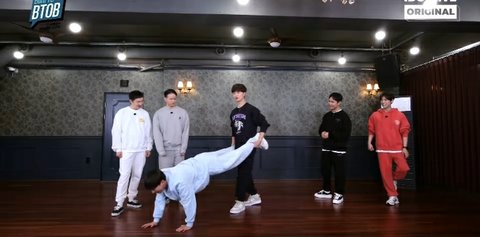 아무것도 없는 세트에 옷도 깔맞춤 추리닝 도통 가늠이 안 감 사진 속의 저건 왜 하고 있는것이며 프니 빼고 5명은 어쩌다가 꿀렁춤을 추는것인지...이것도 많이 웃길거같음