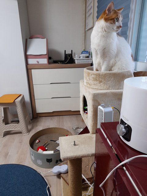 캣타워를 저렇게 분리하자 엄청 좋아해서 저곳에서 창가 바라보는걸 좋아함.