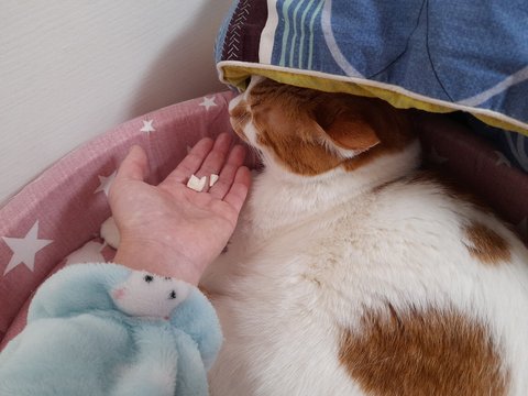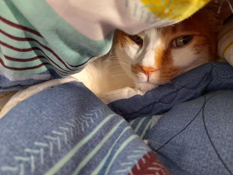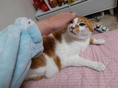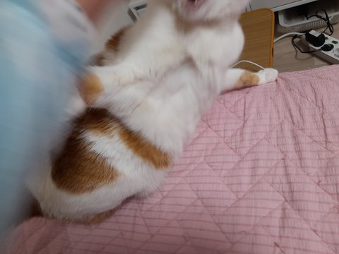 누워있는 집사한테 밥달라고 야옹야옹하고 있음.