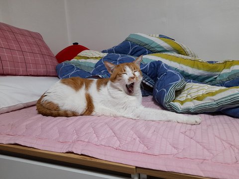 집사를 언제 폭행했냐는 듯 편안한 얼굴로 하품하고 있음.