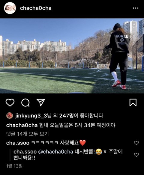 축구 연습장에서 만난 것 같은 이현이와 김진경