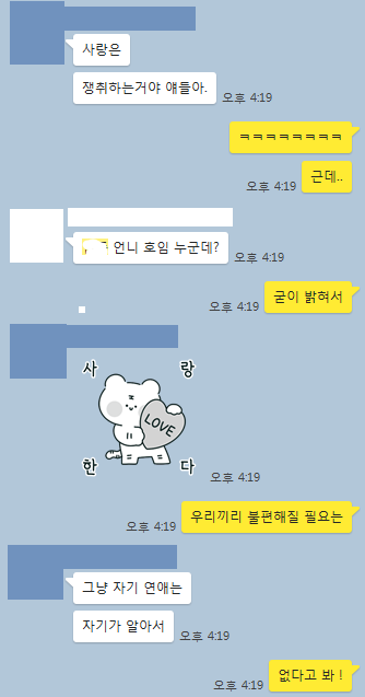 쟤들이 좀 더 전투적으로 나가서 관계 유지가 힘들면 나도 적극적으로 뭘 해보려고 하겠지만..아직은 ㅇㅇ이보다 A랑 B가 더 좋아서 ㅋㅋㅋㅋㅋ...