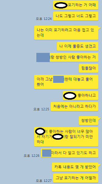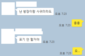 근데 쟤네들 지금 좀 위태롭고, A는 내가 포기했다는 말 듣자마자 막 ㅇㅇ이랑 대화한 내용 캡쳐해서 보내주는데 아무리 말을 그렇게 해도...저게 맞는 건지 모르겠고...좀 봐주기 힘들다...ㅠ