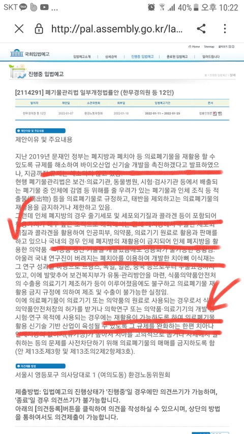 신체 일부가 악용되고 유전자 변형된 약물이나 실험에 사용되는 것은 윤리적으로 논의가 필요한 부분이다. 법의 규제 완화로 최소한의 방지도 못하게 된다면 기술의 발달이 윤리에 반하는 상황을 법이 방관하게 된다. 유전자 변형이 최근 인간의 건강에가장 큰 위협이 되고 있는 만큼 법 규제는더욱 강화해야 하며 투명한 절차를 통해 감시해야 한다. 개인의 생명과 자유를 침해할 소지의 치명적인 법을 상식적인 수준에서도 일반인이 납득하기 어렵다. 수출/수입 지향적 우생학적 금권주의 법에 우리나라의 미래가 저당잡히면 안된다 미래에 각종 유전자 변형과 그에 따른 실험 약물들의 위험에 노출될길 바라지 않는다 위 법안을 국민의 한사람으로서 강력히 반대한다
