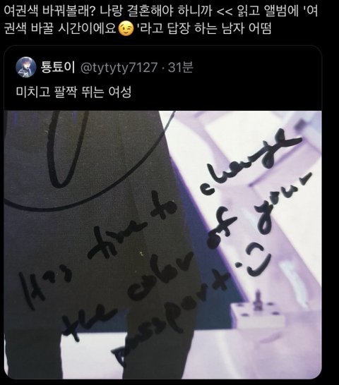 팬: 여권색 바꿔볼래? 나랑 결혼해야하니까