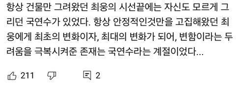 배경도 진짜 예쁘고 코디도 말할 것도 없고.. ㅠㅠㅠ 웅연수 행복해라 ㅠㅠㅠ 난 진짜 웅이 사랑해 음소거 처리한 거에서 작가님한테 진짜 찐감탄함 ㅠㅠㅠ