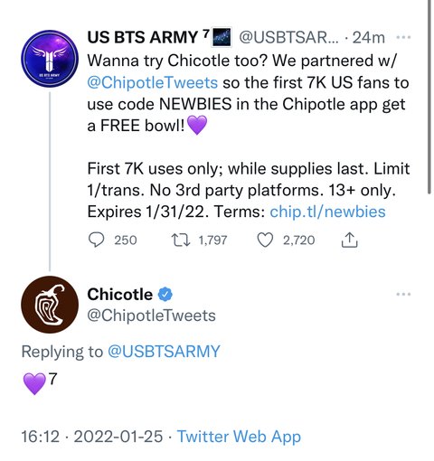 미국 아미를 위한 특별 할인코드가 나왔고