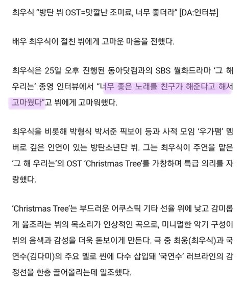 최ㅇㅅ님! 인터뷰에서 뷔 언급