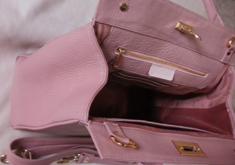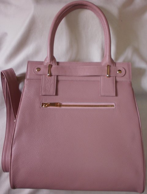 핑크 컬러 오플 엠보싱 부드러운 가죽과 골드 도금된 금속 장식과 투웨이 지퍼,스웨이드 안감 등을 사용하여 럭셔리하게 제작하였으며,숄더는 후크를 이용하여 탈부착 가능한 천연 가죽 토트백입니다.(마디샤)
