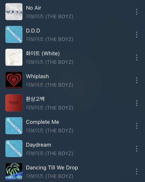 이거랑 비슷한 더보이즈 노래 좀 추천해줄 수 있을까? 내 아이돌이랑도 친하고 무대도 잘 해서 본진은 아니지만 항상 응원하고 있어 좋은 하루 보내!!