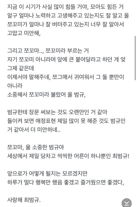 난 범규 관련해선 이 글이랑 그 기타 브이앱이 그렇게 몽글몽글 뭉클함..ㅜ