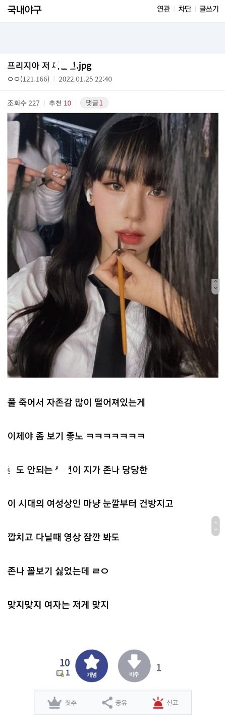 여자한테 사랑받아본적없는 방구석 도태남들이 돈많고 잘나가고 자존감높은 여자한테 열폭오지는데 프리지아가 딱 그럼ㅋㅋ 논란터지기 전부터 남초에 프리지아 까글 많았음
