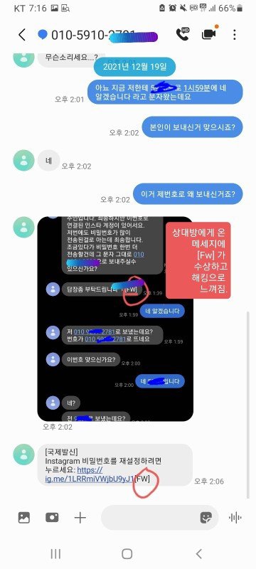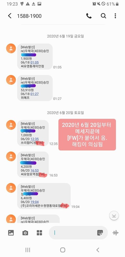 해킹증거들 중 하나인데 항상 핸드폰 문자메세지에 [FW]라고 딸려옴.