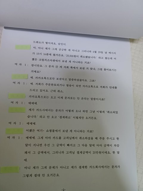이건 쇼핑몰과 전화통화내역을 녹음한 녹취록 쇼핑몰은 카카오톡으로만 취소, 결제, 배송등의 메세지만 보낸다고 함