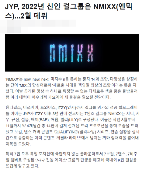 JYP 신인 걸그룹 NMIXX(엔믹스)