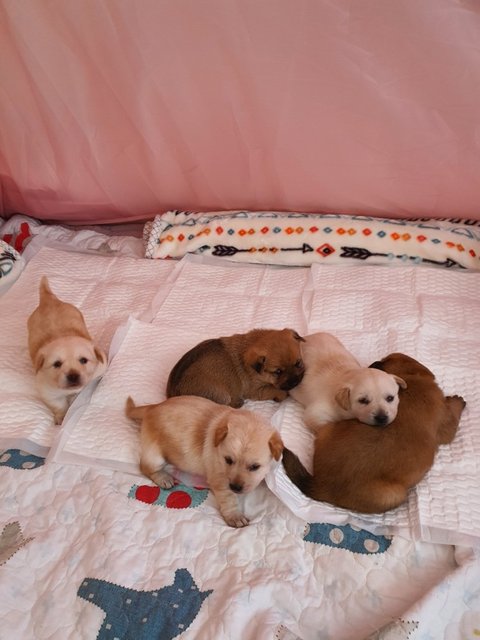 1살 추정되는 유기견 럭키가 낳은 오둥이입니다.