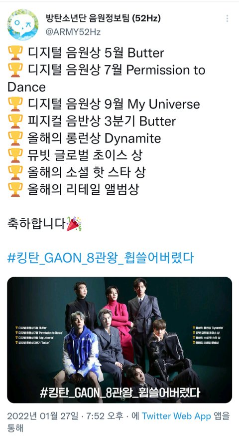 킹탄_가ON_8관왕_휩쓸어버렸다