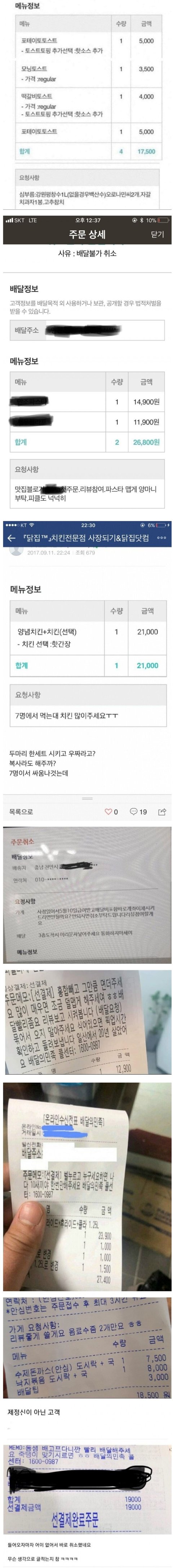 주문 거부하는 배달의민족 사장들