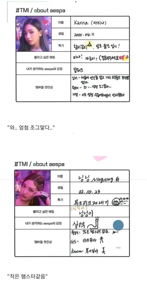 윈터 실제 키는 164cm에서 165cm로 작지 않음