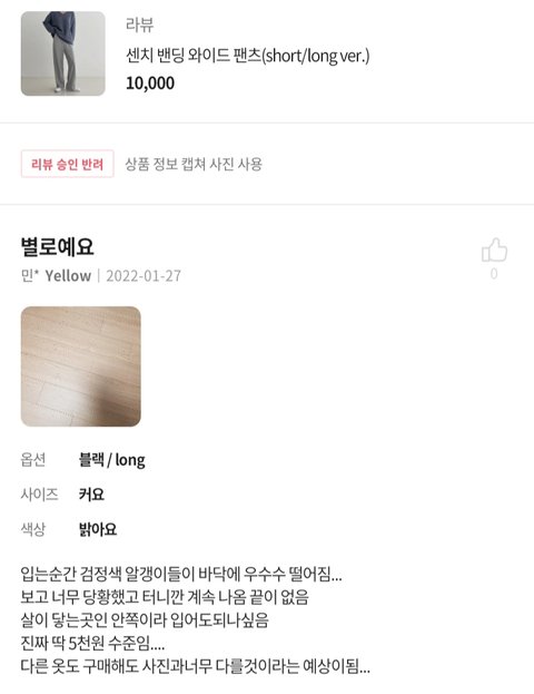 그런데 상품정보 캡쳐사진 사용이라며 리뷰승인 반려를 했더군요....ㄷㄷㄷㄷ